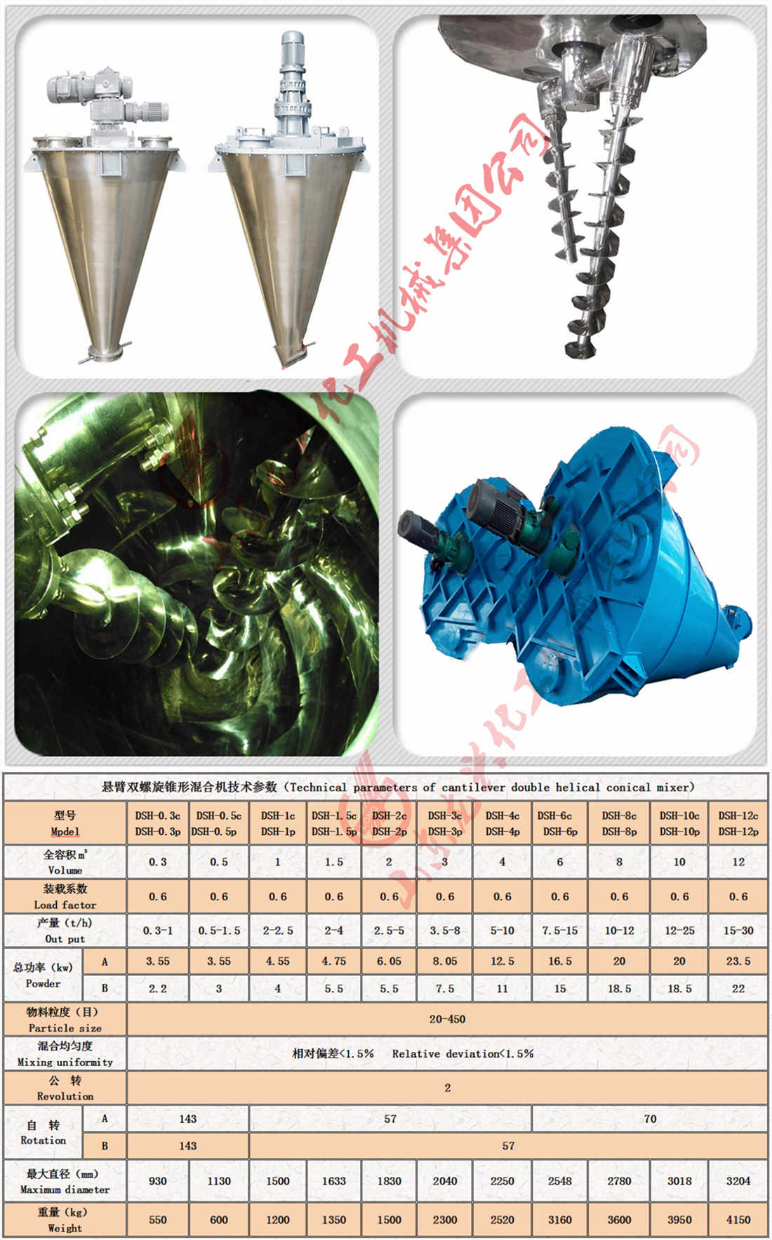 不銹鋼雙螺旋錐形混合機(jī)廣泛用于化工、陶瓷粉末、nong藥、染料、食品、色料、釉料、飼料、建材、稀土等粉體與粉體(固—固)的混合。這類化工機(jī)械對(duì)混合物料適應(yīng)性廣,對(duì)熱敏性物料不會(huì)產(chǎn)生過(guò)熱,對(duì)顆粒物料不會(huì)壓饋和磨碎,對(duì)比重懸殊和粒度不同的物料混合不會(huì)產(chǎn)生分屑離析現(xiàn)象。該機(jī)是一種高效的對(duì)流混合機(jī).它能夠溫和地混合產(chǎn)品,在不損壞物料的前提下保證高精度的混合.懸臂雙螺旋錐形混合機(jī)應(yīng)用于溫和攪拌與出料無(wú)殘留效果要求的混合攪拌.此外,這種混合機(jī)還能起臨時(shí)混合的中間儲(chǔ)存作用.此種混合機(jī)適用于粉體,漿料,晶體,粒狀或團(tuán)狀粉體以及配合加液的攪拌工藝.