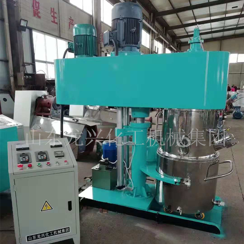 雙行星動(dòng)力混合機(jī)是一種無死點(diǎn)高低速結(jié)合、強(qiáng)力分散混合攪拌設(shè)備,適用于化工、輕工、食品、制藥、建材、農(nóng)藥等行業(yè)的固—液、液—液相物料的混合、反應(yīng)、溶解、分散等工藝,如粘膠劑、硅酮密封膠、聚氨酯膠、丙稀酸膠、汽車密封膠、及封裝膠、軟膏及漿糊狀物料、潤(rùn)滑脂及油漆、膏狀化妝品、油墨及顏料及乳劑、膏狀食品及添加劑等的制作這種混合機(jī)可以與各種生產(chǎn)形式同時(shí)進(jìn)行,單速、雙速、變速、三種速度可供選擇,滿足各種工藝要求。強(qiáng)力分散機(jī)釜內(nèi)有三根不同形式的攪拌器,其中一個(gè)攪拌器在繞釜體軸線轉(zhuǎn)動(dòng),其余兩個(gè)攪拌裝置又以不同的轉(zhuǎn)速繞自身軸線高速自轉(zhuǎn),使物料在釜內(nèi)作復(fù)雜的運(yùn)動(dòng),受到強(qiáng)烈的剪切和搓合。設(shè)備內(nèi)有“山”形刮底刮壁刀繞釜體軸線轉(zhuǎn)動(dòng),將粘在壁上和底部的原料刮出參與混合,使其效果更為理想。設(shè)備密封性好,可抽真空,具有良好的排氣除泡效果。設(shè)備缸蓋可液壓升降,缸體可自由移動(dòng),操作十分方便。攪拌器的形式,根據(jù)物料要求可為多層槳葉式、框式、蝴蝶式、外輪式等。